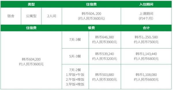 (一)膏火:4,736,000韩币(约合东说念主民币24300元)/学期