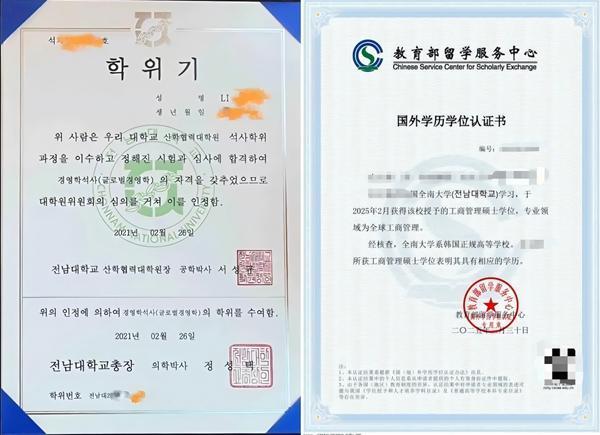 全南大学学位文凭及中留服外洋学历学位认文凭样本