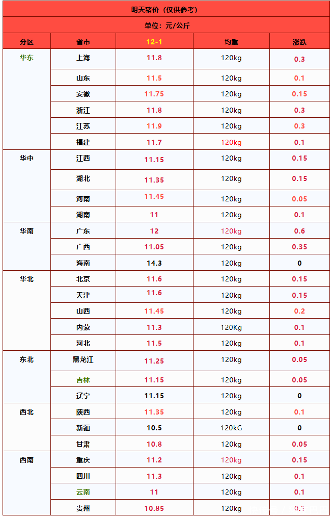 受宰杀场调价,瞻望,12月1日,猪价呈现开门红,价钱以颤动偏强为主!全外洋三元标猪均价在11.44元/公斤,后市温雅会团猪企出栏节拍的变化!