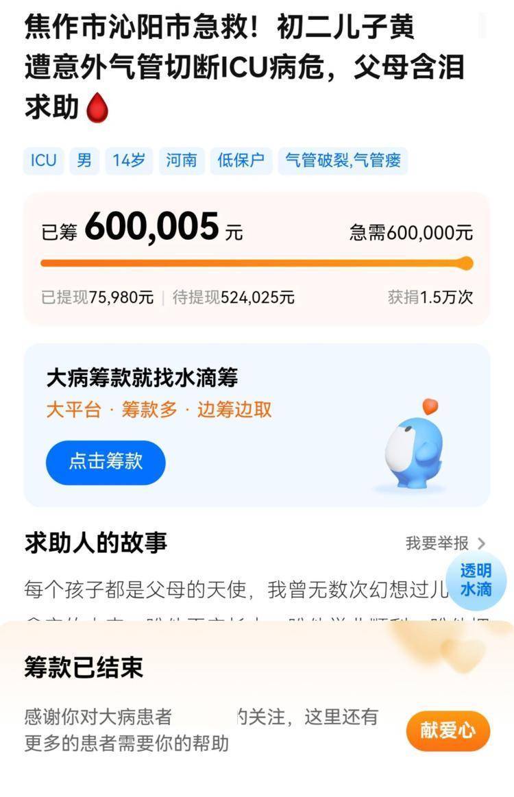 筹款满60万元,图源:水点筹