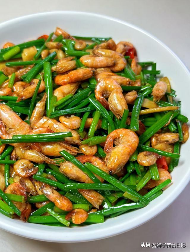 小贴士:韭菜一炒老就不好意思味,必须终末放、大火快炒。河虾选活蹦活跳的,果然买不到就用冷冻的,但一定要沥干水。