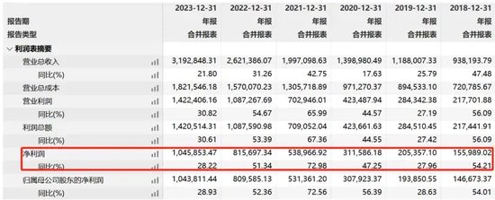 值得注意的是,比年来山西汾酒的事迹增速一直不才降。2021年至2023年,总营收增幅分袂为42.75%、31.26%、21.8%,归母净利润增幅分袂为72.56%、52.36%、28.93%。