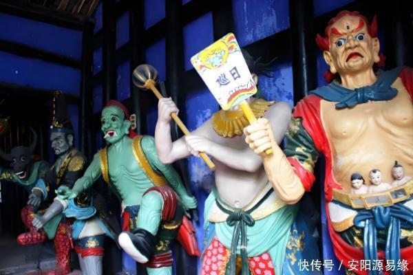 一干涉皇帝殿,塑有存一火判官、毒头马面、辱骂无常和昼夜游神的阴间鬼神,便顿时让东说念主感到阴雨恐怖,生出敬畏之心。