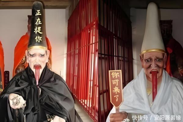 尤为引东说念主注见解是辱骂无常的两顶高帽子上,离别写着“正在捉你”和“你也来了”8个大字。